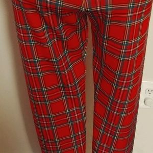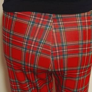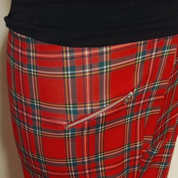 NEW Scottish print stretch pants. These gorgeous pants come with two silver zippers in the front. Can fit tall or short person. The size is 6 which is small to medium.