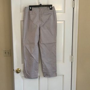 Talbots brown/cream pants. Size 10. Faux back pockets. Zip/button/hook closure. 16” side to side waist. 28” inseam length. Like new condition. Smoke free home.