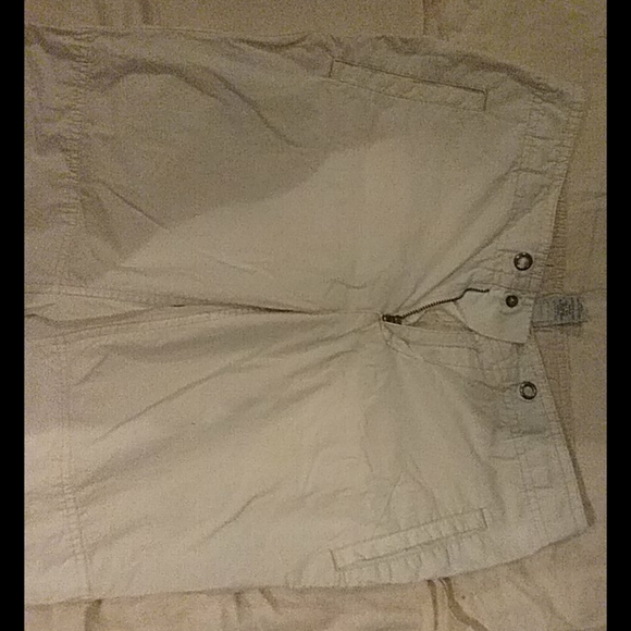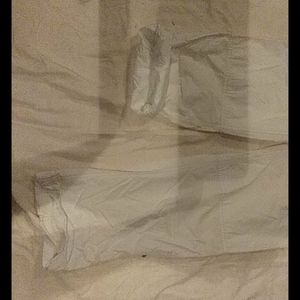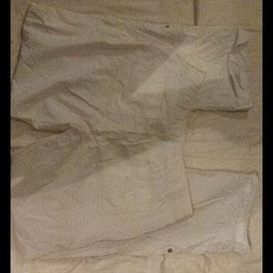 White casual pants can also roll up to be used as capris missing string in front