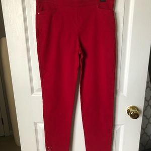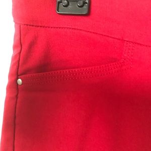 Beautiful deep RED, elastic waist with slit pockets on both sides. Small slits at ankles with crystal rhinestone accent. Can dress up or down. Very stretchy and comfortable. New but never worn.