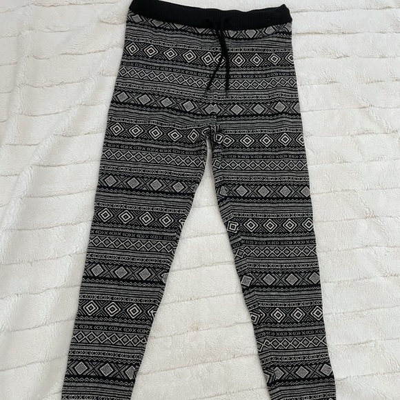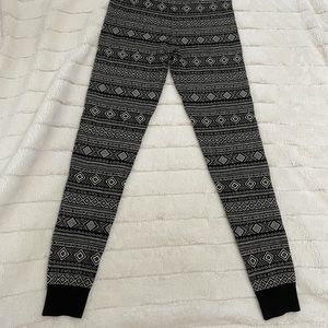 Thick, stretchy, pants. Elastic top and cuffs at bottom.