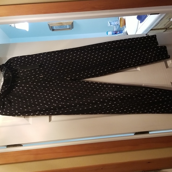 Drawstring elasticized waist kinda pleated. Never worn too long and never hemmed. No damage and downsizing closet