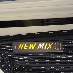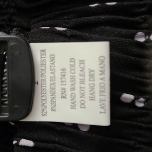 Black pleated dress pants. one size fits most. white dot design. Wide leg. elastic pull on style. almost looks like a long skirt.