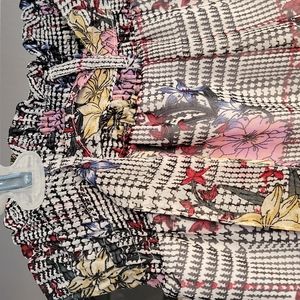 wide leg sheer pants with ruffled elastic waist and fabric belt. floral. size 1X. never worn