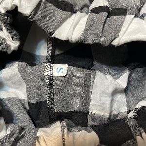 Good condition. No tears or stains. Black and white checkered. Fits small