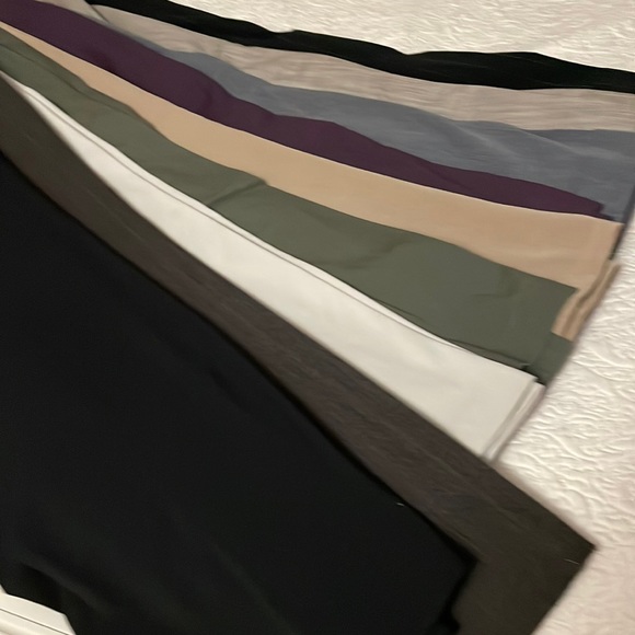Nine trousers A variety some cotton some polyester some a blend mostly high waisted professional work pants. Hangers included