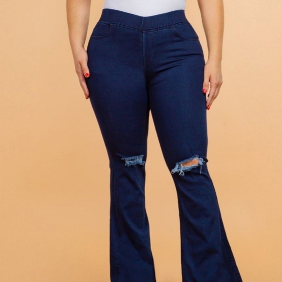 Stone Wah Blue Flare Jeans