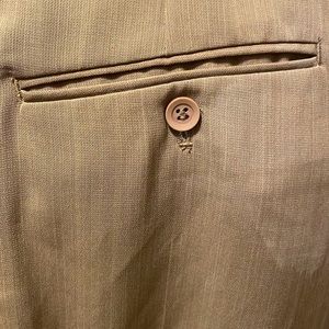 Pants with two front pocket one zipper and the back have two pocket with buttons on them
