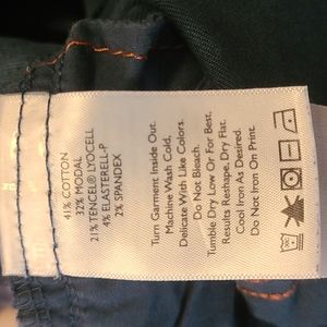 Eddie Bauer slightly curvy, skin straight jean type pants. These are like a blue green color. More dark teal. No stains or damage. Smoke free home.