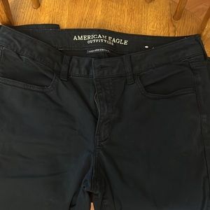 Navy slacks, worn but in good condition