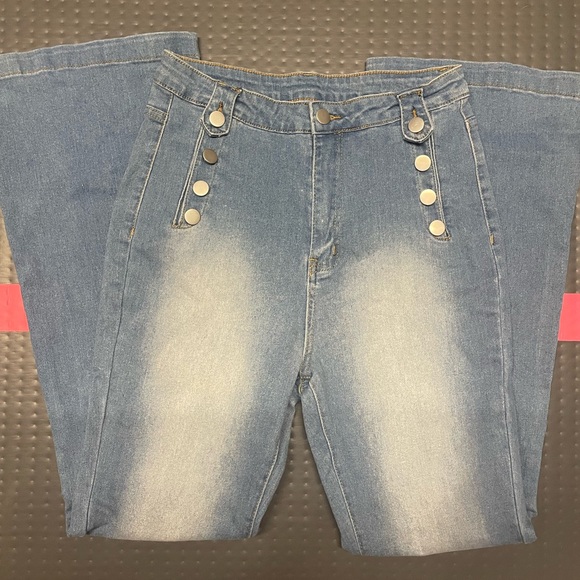 never worn! unfortunately, not sure of its brand but still pretty cute :) they do flare at the ends