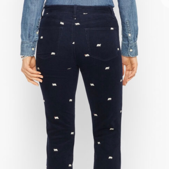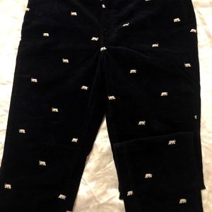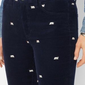 CORDUROY STRAIGHT LEG PANTS - POLAR BEAR EMBROIDERED