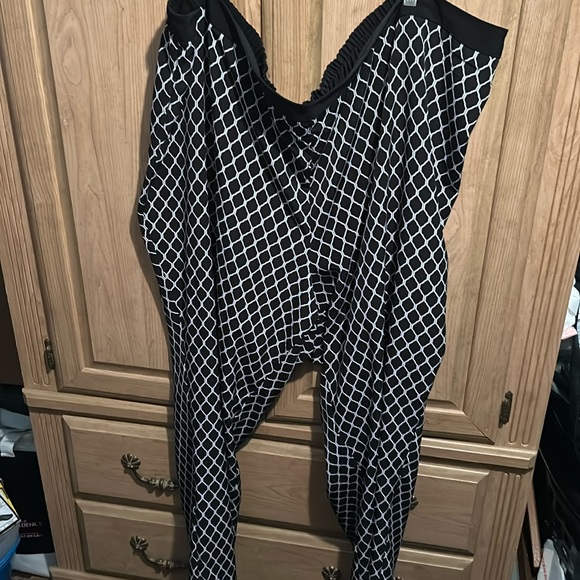 These pants have a fun chic print, they are similar to palazo pants wide leg. No pockets. Excellent condition