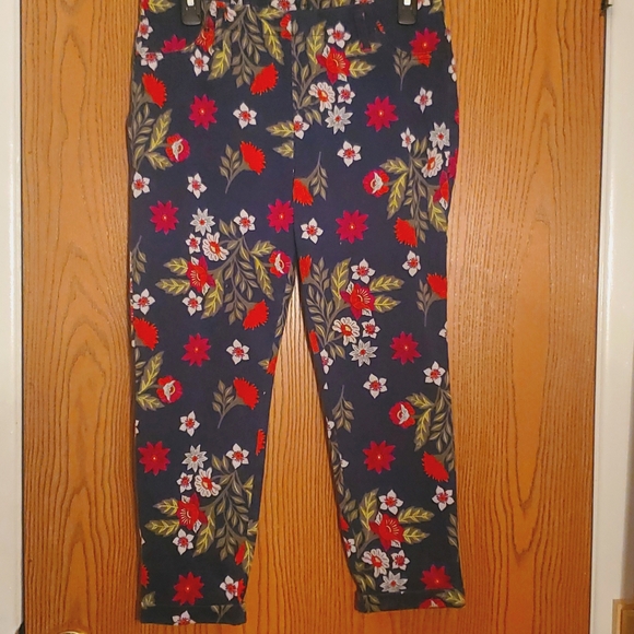These are some very cute pants flower print solid colored shirt. Pull On, No Pockets.