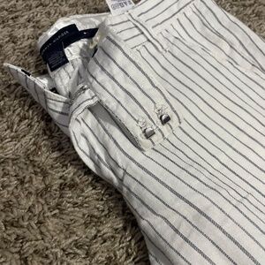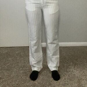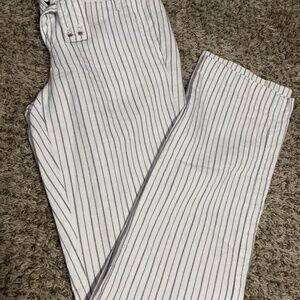 Slim fit pinstripes pants. These can be dressed up, but are thin see photos
