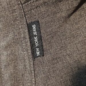 size 10, dark grey, side pockets on legs, back and regular pockets