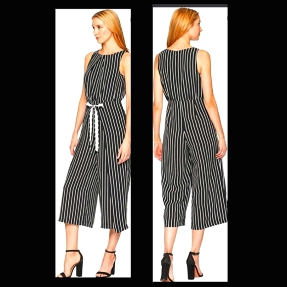 Pants Jumpsuit Suze 12 NWT Black White Pinstripes