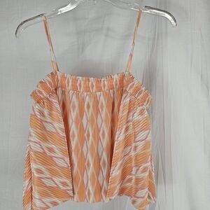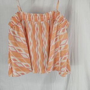 Pants Store Nwt Fanco Ekt1627 Orange Multi Women's Size Large Boutique Accordion Style Sleeveless Blouse
