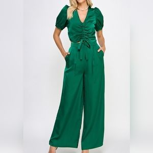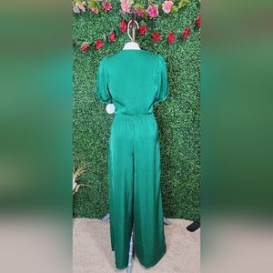 New with Tag. Satin Short Sleeve Drawstring Top & Pants set with Pockets. Waist is garterized On the back. Zipper Closure is on the side for both Pants and top.