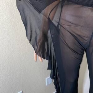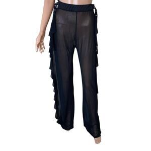 Pant's wide leg side ruffle semi sheer black dance costume COS Play dress up MD