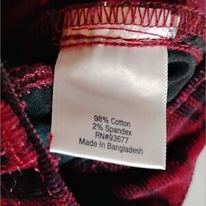 Flat measurements for the waist lines are approximately: Black 17.5", Gold 18.5" and Red Plaid 18." The fabric for the red feels like corduroy. The gold is satiny feeling and black feels like a standard work pants fabric. No rips tears or stains. The gold are Chicos and the size says "25 US size 14." The red are St. John's Bay. The black are A New Day. All are used. Smoke free/Dog friendly home. Price is for all three pairs of pants together.