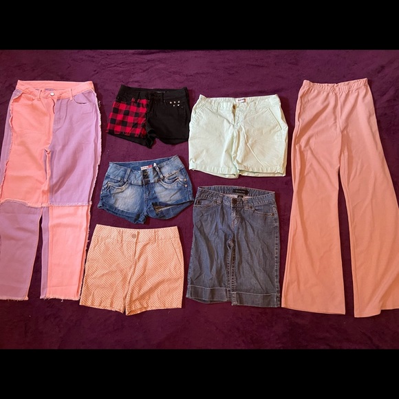 Lot of pants, jeans, and shorts of different sizes. See images for sizing. Not splitting the lot.