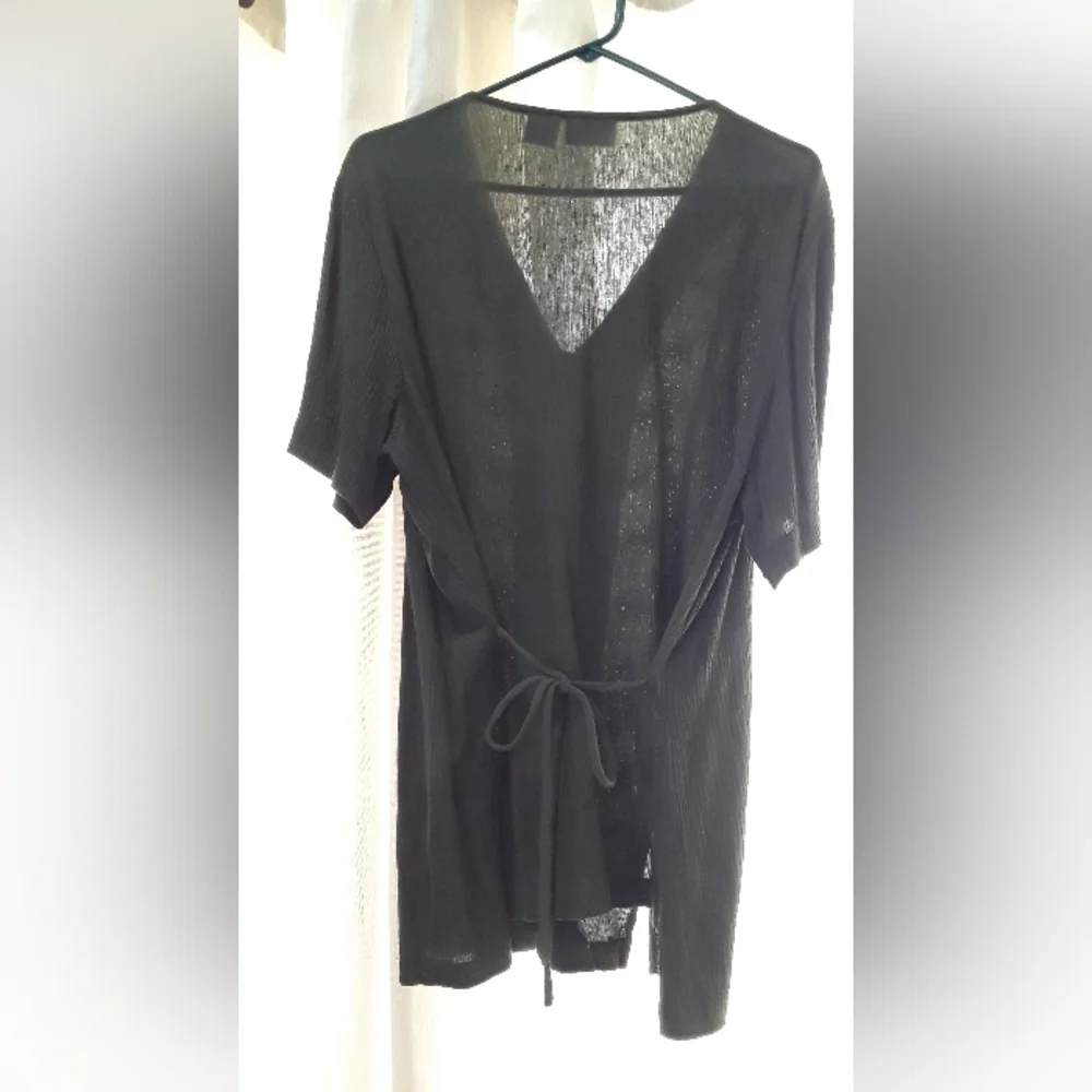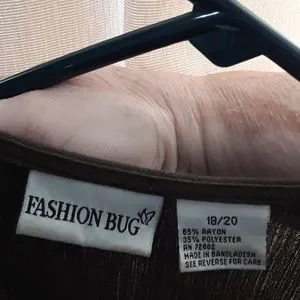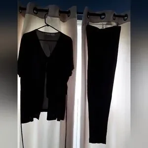 Olive green color by Fashion Bug. Pant has elasticized waist. Nice button detail on front of blouse. Top ties in back. Size 18/20.