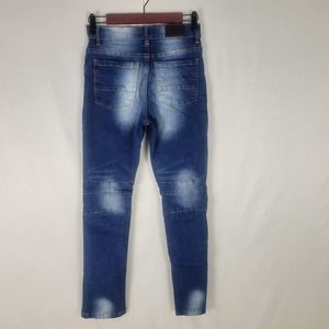 Panyc Boys Jeans Size 14 W25 x L26 Skinny Leg Distressed Motto Blue Jeans