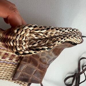 Paola Del Lungo Purse Handwoven Raffia Leather Top and Strap