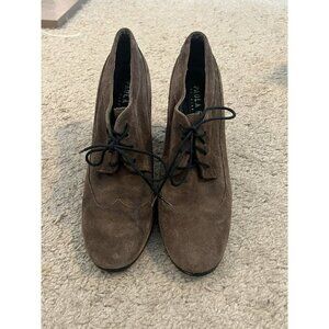 Paola Ferri By Alba Moda Tan Suede Leather Lace-Up Oxford Block Heel Booties.