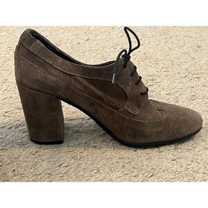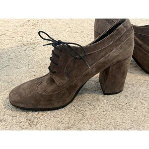 Paola Ferri By Alba Moda Tan Suede Leather Lace-Up Oxford Block Heel Booties 39