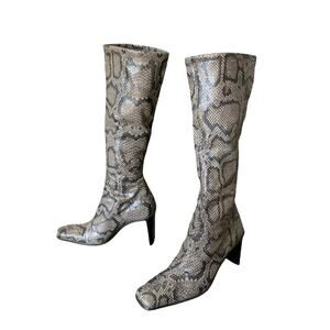 Paola Ferri Leather Snakeskin Knee High Boots. Womens Size 37 Square Toe Python