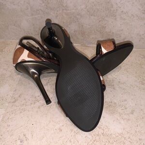 Size 6.5 open toed giraffe print stiletto heel, they are super cute!! Still in really great condition!! Can dress up an outfit or worn with a sexy outfit.