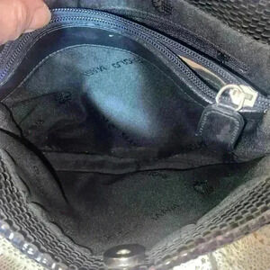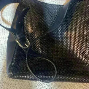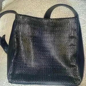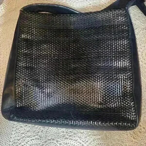 Paolo Masi black woven leather crossbody. In good pre loved condition. Some wear at the base. *see photos for more details. Measures 9” x 9” x 3”.
