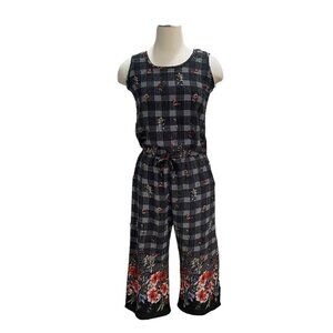 Keywords: Paolino jumpsuit, sleeveless jumpsuit, plaid floral jumpsuit, wide-leg jumpsuit, tie waist jumpsuit, women's jumpsuit, printed jumpsuit.