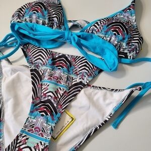 Paolita Rhapsody in Blue Whistler Top and Aeolian Bottom Bikini Set NWT