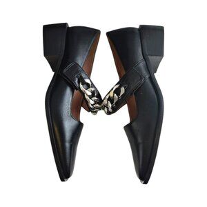Paolo 7.5 Loafers With Heel Black Silver Chain Velcro Strap NWOT