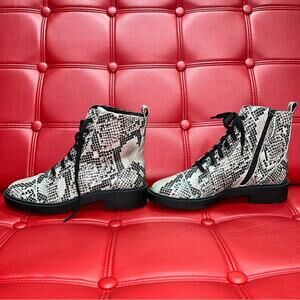 Paolo B&W Faux Snakeskin Lace-Up Rubber Lug Sole Combat Boots Sz5.5 6 or 10 NWOB
