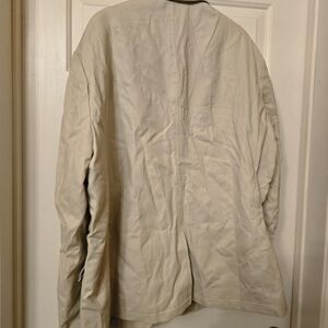 Stylish PJ Paul Jones blazer in a classic cream color. Features a notched lapel and two-button closure. Perfect for formal and casual occasions.