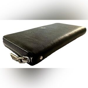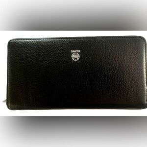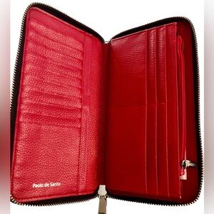 Color: Black with Red Interior. Silver Toned Hardware. Genuine Leather. 16 Card Slots. 4 Slip Pockets. 1 Inside Zip Pocket. Approximate Dimensions: L’8 W’1 H’4. New Without Tags, Never Used. Open to all reasonable offers.