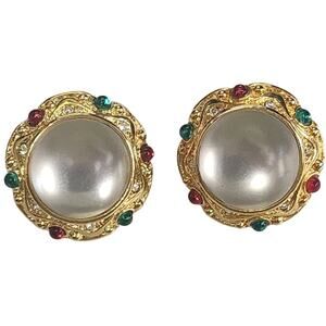 Paolo Gucci Gold-tone Frosted Cabochon Clip Back Earrings, Vintage