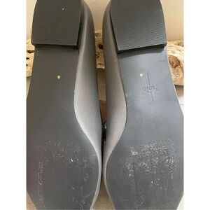 A chunky curb chain adorns a tumbled faux leather loafer that features a dramatic pointed apron toe.