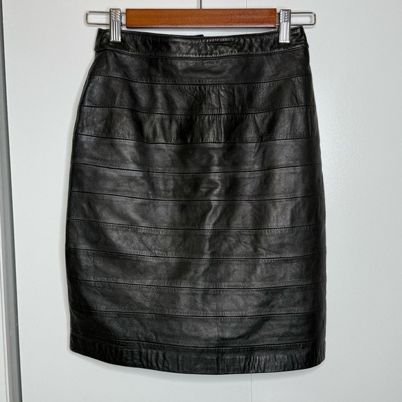 Paolo Santini - Vintage 100% Leather Black Mini Skirt - Size 4