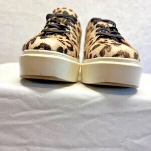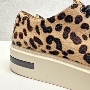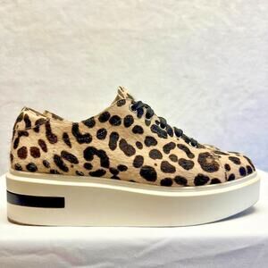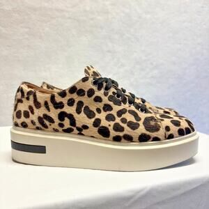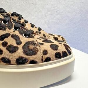 Paolo Tan Leopard Print Calf Hair Lace Up Platform Sneaker Shoes Women's Size 9M