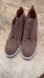 Stylish taupe suede booties with side zipper. Perfect for any outfit.