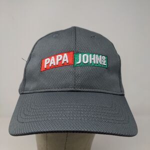 Papa John's Mens Strapback Hat Gray Adjustable Embroidered Logo Employee Uniform