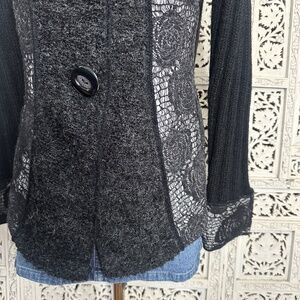 Papa Vancouver Black Lace Mohair Wool Blend Whimsygoth Grunge Collared Cardigan