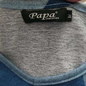Excellent pre-owned condition, Papa Vancouver blue multi patterned tunic top with two front patch pockets and v-neckline, size Medium.