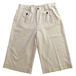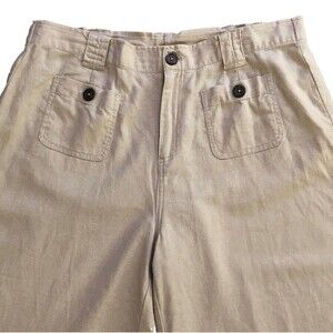 Papagallo Linen Blend Wide Leg Capri Womens Sz 10P Y2k Tan Scandi Girl Lagenlook