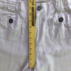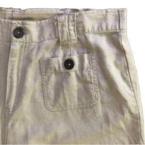 Vintage Y2k Papagallo Linen/Rayon Blend High Waisted, Wide Leg Capri/Bermuda Shorts in Tan/Oatmeal. Neutral Scandi Girl Lagenlook with Patch Pockets at the front and Welt Pockets at the back. Two Elastic Stretch areas at Back Waistband for comfy fit. Easy Care/Machine Washable.